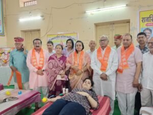 न्याति अध्यक्ष प्रकाश चावड़ा, रक्तदान शिविर संयोजक लिखमाराम परिहार, अनोपचन्द चावड़ा तथा पृथ्वीराज राज चौहान तथा शिल्पी सोलंकी ने अतिथियों को दुप्पटा पहनाकर स्वागत किया। शिविर में 141 युवाओं ने रक्तदान किया।