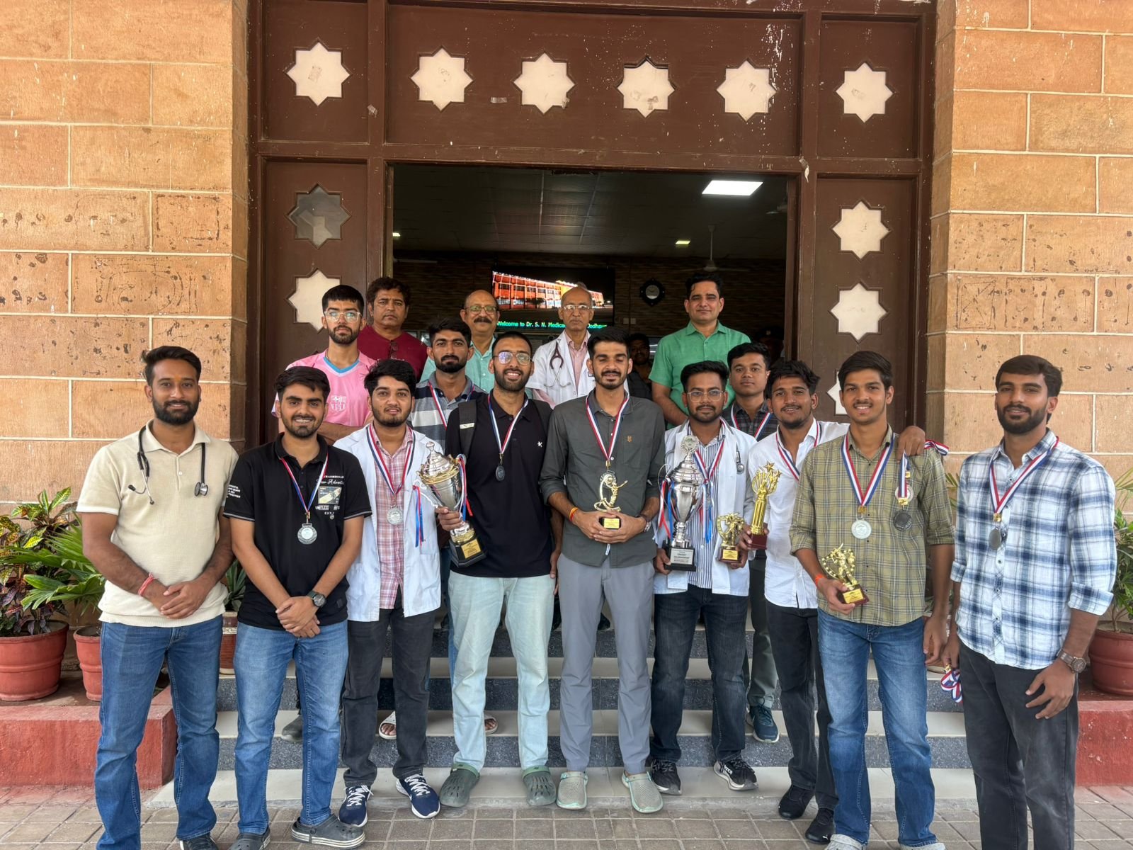 जोधपुर। एम्स ऋषिकेश में अखिल भारतीय स्तर पर खेलकूद एवम सांस्कृतिक प्रतियोगिता पायरेक्सिया आयोजित हुई। इस प्रतियोगिता में देश के सभी मेडिकल कॉलेज के विद्यार्थिओं ने भाग लिया। डॉ. एसएन मेडिकल कॉलेज में पायरेक्सिया स्टूडेंट रिप्रेजेंटेटिव महेश गढ़वाल एवं चिराग शर्मा के नेतृत्व में टीम का जबरदस्त प्रदर्शन रहा।