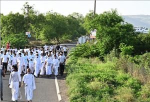 (महाराष्ट्र) (रमेश भट्ट)। अहिंसा यात्रा द्वारा जन मानस में सद्भावना, नैतिकता एवं नशामुक्ति की अलख जगाने वाले। देश विदेश में भ्रमण कर जनता को सन्मार्ग की राह दिखाने वाले शांतिदूत युगप्रधान आचार्य श्री महाश्रमण जी के छत्रपति संभाजीनगर यानी औरंगाबाद पदार्पण में अब कुछ पड़ाव ही शेष है। चरैवेति चरैवेति के सूत्र के साथ पदयात्रा करते हुए आचार्यश्री गांव–गांव, नगर–नगर में विचरण करा रहे है। आज सुबह आडुल गांव से गुरुदेव ने मंगल प्रस्थान किया। स्थानीय श्रद्धालुओं ने निवेदन पर गुरुदेव आधा किमी का अतिरिक्त पथ लेकर गांव के भगवान महावीर जैन मंदिर में पधारे एवं श्रावक समाज की अपने आशीष से कृतार्थ किया। तत्पश्चात विहार मार्ग के दौरान कुछ स्थानकवासी श्रमण संघ की साध्वियों ने गुरुदेव के दर्शन किए। गुरुदेव उन्हें प्रेरणा प्रदान कर पुनः गतिमान हुए। रविवार और औरंगाबाद की दूरी कम होने से आज विहार में श्रावक समाज की उपस्थिति निरंतर बढ़ती जा रही थी। लगभग 9 किमी विहार कर गुरुदेव चित्ते पिंपलगांव पधारे जहां स्वामी विवेकानन्द उच्च माध्यमिक विद्यालय में गुरुदेव का प्रवास हुआ। आज लगभग दो वर्षों के अंतराल के बाद बहिर्विहार से समागत मुनि पुलकित कुमार जी ठाणा–2 भी आज गुरु सन्निधि में पहुंचे।