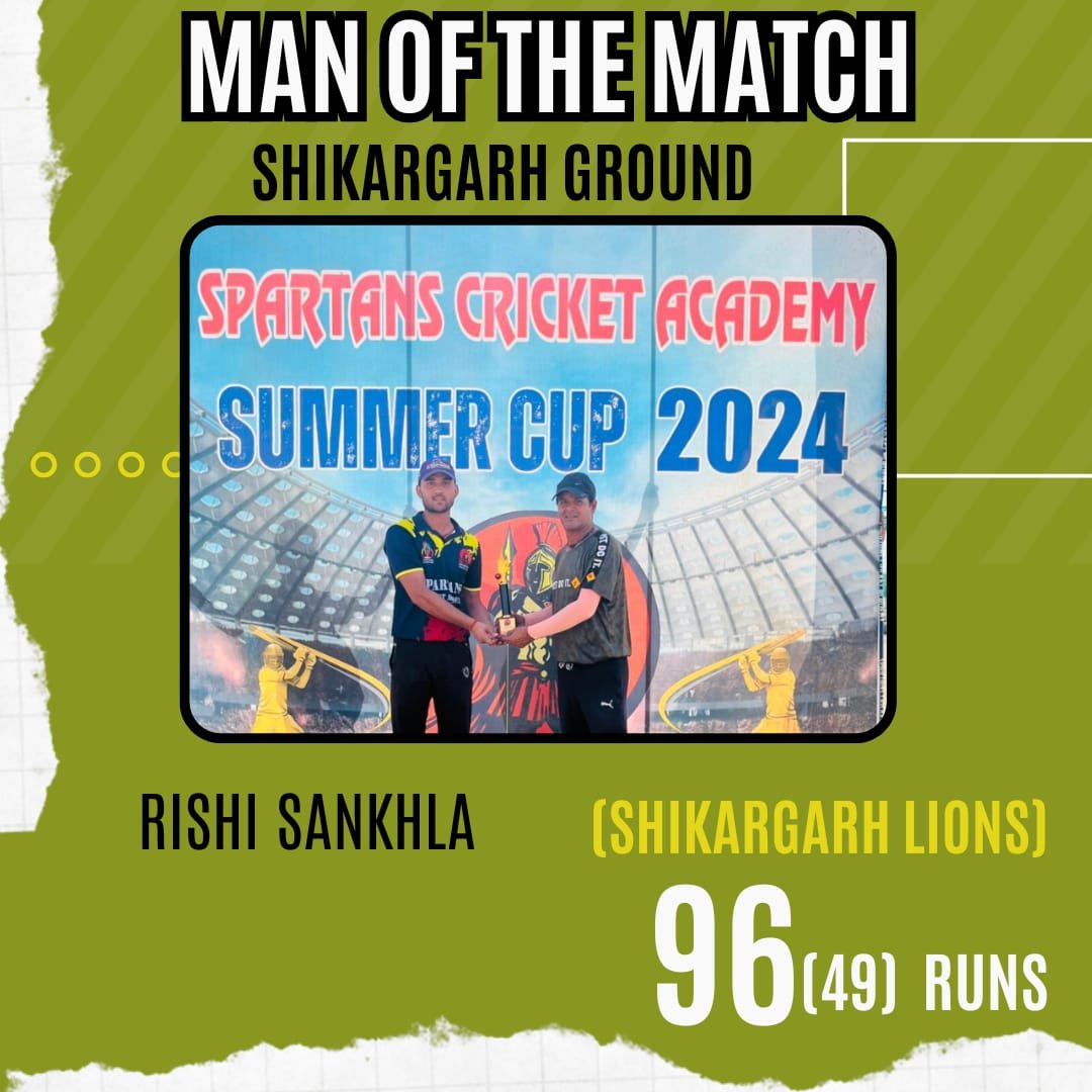 मोहित सिंह शेखावत ने घातक गेंदबाजी करते हुए चार विकेट लिए। जवाब में शिकारगढ़ किंग की टीम ने चार विकेट खोकर विजयी लक्ष्य हासिल कर लिया। ऋषि सांखला के 7 चौके व 9 छक्के सहित 96 रन की बदौलत पाल सुपर जेंट्स ने 148 रन बनाए। जवाब में शिकारगढ़ लाइन की टीम ने 5 विकेट खोकर विजयी लक्ष्य हासिल कर लिया। अर्जुन ने 47 रन बनाए। सुपर किंग ने पहले खेलते हुए 142 रन बनाए। वंशिका सिंह सिंदल व पंकज प्रजापत ने तीन-तीन विकेट लिए। जवाब में शिकारगढ़ टाइटन की टीम ने तीन विकेट खोकर विजयी लक्ष्य हासिल कर लिया। जिसमें नरेश बिश्नोई ने नाबाद 56 एवं सिद्धार्थ बिश्नोई ने नाबाद 51 रन बनाए। अंडर 14 आयु वर्ग में शिकारगढ़ रॉयल्स ने पहले खेलते हुए 131 रन बनाए। सुजल पांडे ने तीन विकेट लिए। जवाब में हॉस्टल सुपर जेंट्स की टीम ने 8 विकेट खोकर विजयी लक्ष्य हासिल कर लिया। सचिन ढाका ने नाबाद 62 रन बनाए। दुष्यंत सिंह ने घातक गेंदबाजी करते हुए चार विकेट चटकाए। दूसरे मैच में डीपीएस टाइटन ने पहले खेलते हुए 121 रन बनाए। कार्तिक ने तीन विकेट लिए। जवाब में चैलेंजर्स की टीम ने पांच विकेट खोकर विजयी लक्ष्य हासिल कर लिया। भवानी सिंह ने तीन विकेट लिए।
