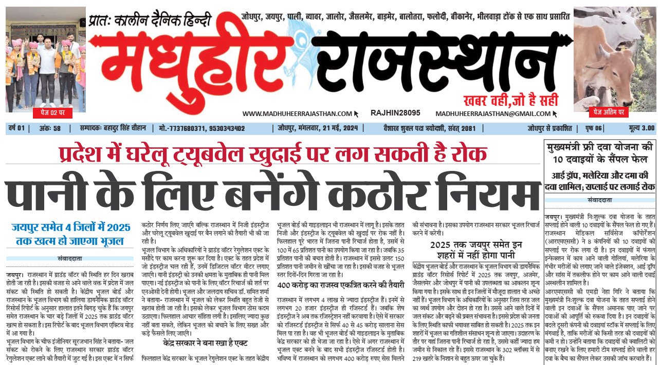 क्या आप \"madhuheerrajasthan\" की खबरों से संतुष्ट हैं?