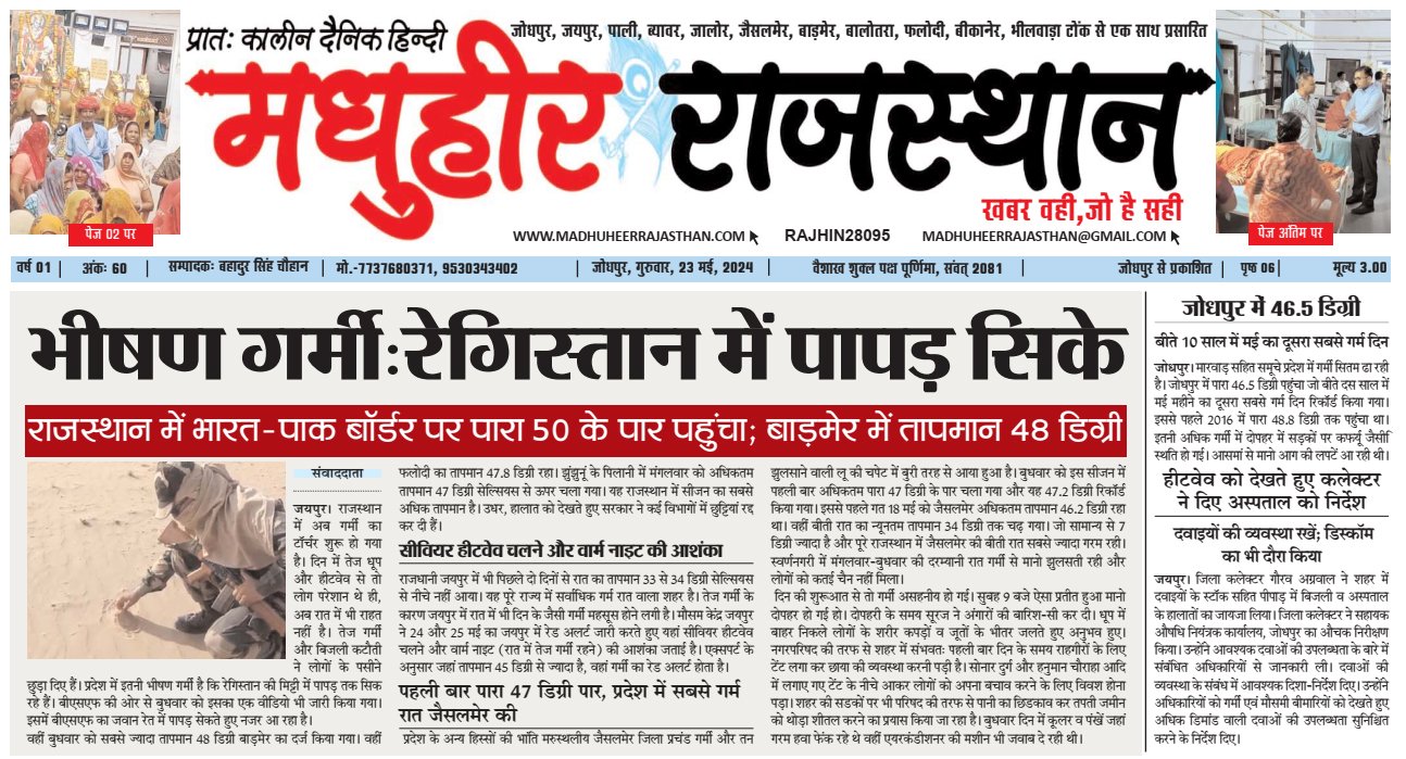 क्या आप \"madhuheerrajasthan\" की खबरों से संतुष्ट हैं?