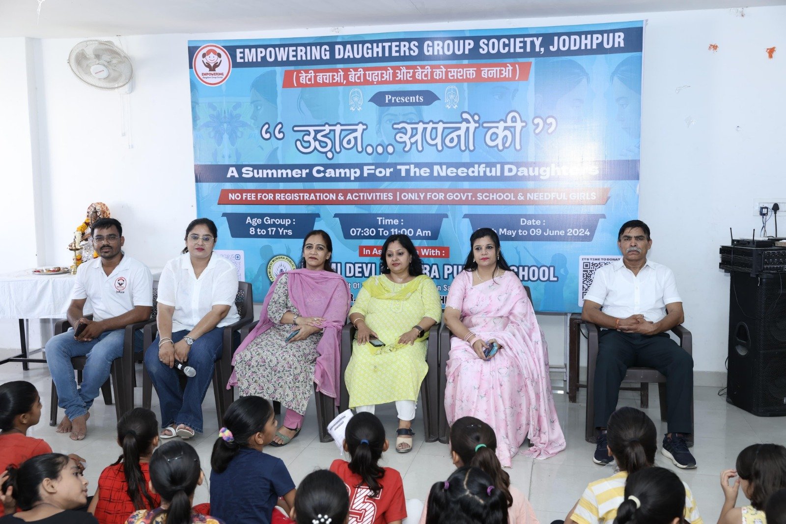 संस्था के उपाध्यक्ष ने बताया कि इम्पावरिंग डॉटर्स ग्रुप सोसाइटी पिछले गत 3 वर्षों से इस निःशुल्क कैम्प का आयोजन करती आ रही है। पहले दिन शुभारंभ के साथ एंकर संदीप सेन द्वारा व्यक्तित्व विकास का सेशन लिया गया। इम्पावरिंग डॉटर्स ग्रुप सोसाइटी द्वारा आयोजित इस समर कैम्प में सदस्यों की मुख्य भागीदारी रहती है, जिसमें सौरभ जैन, जतिन ताराचंदानी, अर्पित जैन, धीरेंद्र सांखला, पीयूष माथुर, भूमिका माथुर, अर्शी नाज़, जय राजपुरोहित, जय औदीच्य, दीपक असेरी, रिया गहलोत, प्रद्युमन परिहार, सुरेश रावल, प्रत्युष, सुरेश गहलोत, कार्तिक, पलक मुथा, सिद्धार्थ छुगानी, आरूष माथुर, अनिका नूरानी, रानो, महक ताराचंदानी, निष्ठा, सोनल, टाइनी, धीरज, विशाल, कपिल शर्मा, श्वेता, पूजा चौहान इत्यादि सभी ने महत्वपूर्ण भूमिका निभायी। संस्था का उद्देश्य आरंभ से ही ‘बेटी बचाओ बेटी पढ़ाओ और बेटी को सशक्त बनाओ’ रहा है, इसलिए संस्था इस कैम्प का आयोजन हर वर्ष करती आ रही है।