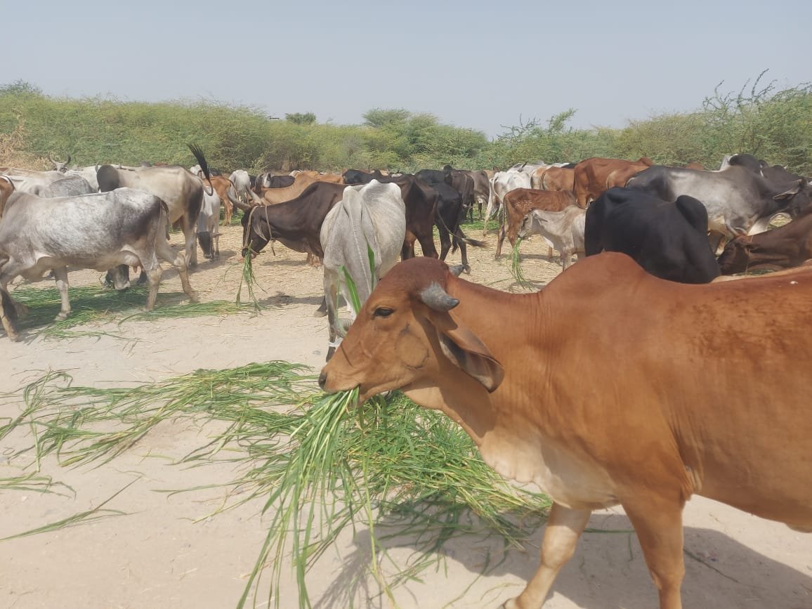 बगड़ी नगर (रमेश भट्ट)। भीषण गर्मी एवं लू के थेपेडो में जब कोई बाहर नहीं आता है तब बगड़ी के गो पुत्र सेवा समिति के कार्यकर्ता गायों की सेवा एवं पशु पक्षियों के लिए चारे पानी की व्यवस्था करने में जुटे हुए हैं। गो पुत्र सेवा समिति के अध्यक्ष प्रहलाद मेवाड़ा ने बताया की भीषण गर्मी व लू के थप्पड़ों के बीच गो पुत्र सेवा समिति के कार्यकर्ता भामाशाह के सहयोग से गायों के लिए जगह-जगह हरा चारा डाल रहे हैं वह पशु पक्षियों के लिए अवाला, तालाब, नाड़ी सहित विभिन्न स्थानों पर पानी डलवा रहे है। रविवार को भामाशाह बेरा सीलावटी निवासी वरदा राम सीरवी के सहयोग से 15 सो किलो हरा चारा डाला गया। गौ सेवा समिति के कार्यकर्ताओं धर्मेश गर्ग ने भामाशाहों का आभार जताया है।