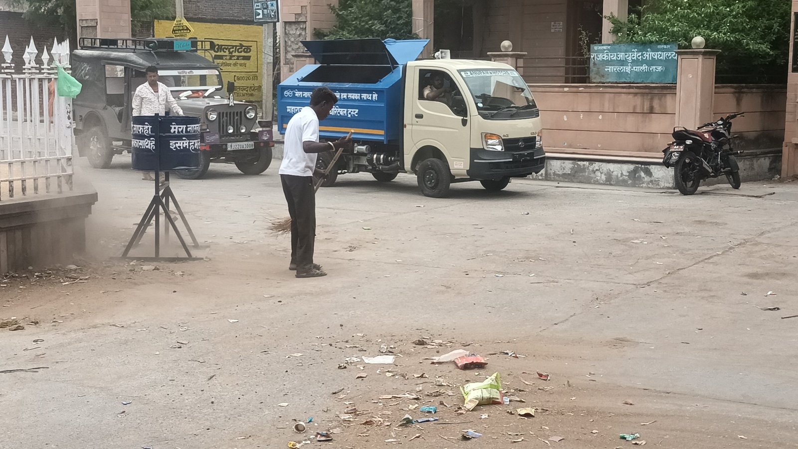 देसुरी ( जगदीशसिंह सिसोदिया नारलाई )। महाराजा स्वरूपसिंह चैरिटेबल ट्रस्ट द्वारा बुधवार को देवनगरी नारलाई सफाई अभियान का आगाज किया गया जिसके तहत सोमवार को किए गए लोकार्पण गाड़ी को सफाई अभियान में लगाते हुए बस स्टेशन एवं मुख्य मार्ग पर सफाई अभियान चलाया ट्रस्ट द्वारा गांव में जगह-जगह डस्टबिन रखवाया गया है वही जनरल मैनेजर रविंद्रपालसिंह मेड़तिया अर्जुन सिंह कुंपावत भूपेंद्र सिंह राव द्वारा सफाई अभियान का निरीक्षण करते हुए दिशा निर्देश देते हुए नज़र आए। पहले दिन मुख्य बस स्टेशन, बस स्टेशन से शनि महाराज रोड पर सफाई कर गाड़ी में कचरा डालकर बाहर डलवाया गया।