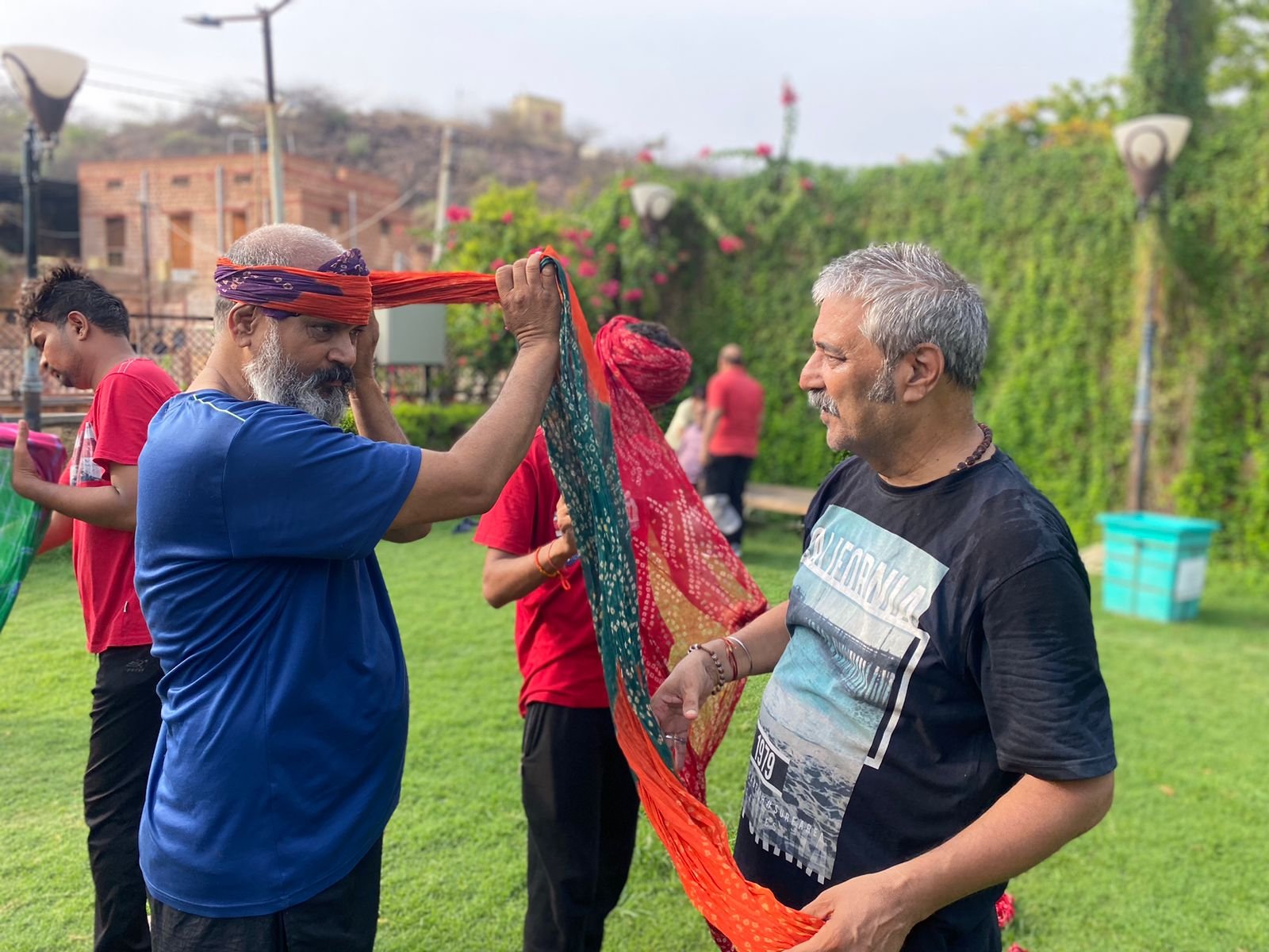 भूतनाथ मंदिर में के पार्क में पुष्करणा सृजन सोसायटी एवं पुष्करणा चिंतन की ओर से आयोजित तीन दिवसीय साफा प्रशिक्षण शिविर में युवाओं व बच्चों ने उत्साह के साथ साफा बांधना सीखा। शिविर के पहले दिन ही साफे के पेच को समझ कर कई प्रशिक्षणार्थियों ने अच्छा साफा बांधा। शिविर के संयोजक सोमदत्त हर्ष ने बताया कि सूचना एवं जनसंपर्क निदेशालय के सेवानिवृत्ति उपनिदेशक आनंद राज व्यास ने साफा शिविर का शुभारंभ किया तथा कार्यक्रम की अध्यक्षता वरिष्ठ पत्रकार दिनेश जोशी ने की इस मौके सीआरपीएफ के कमांडेंट जेके जोशी विशिष्ट अतिथि थे।