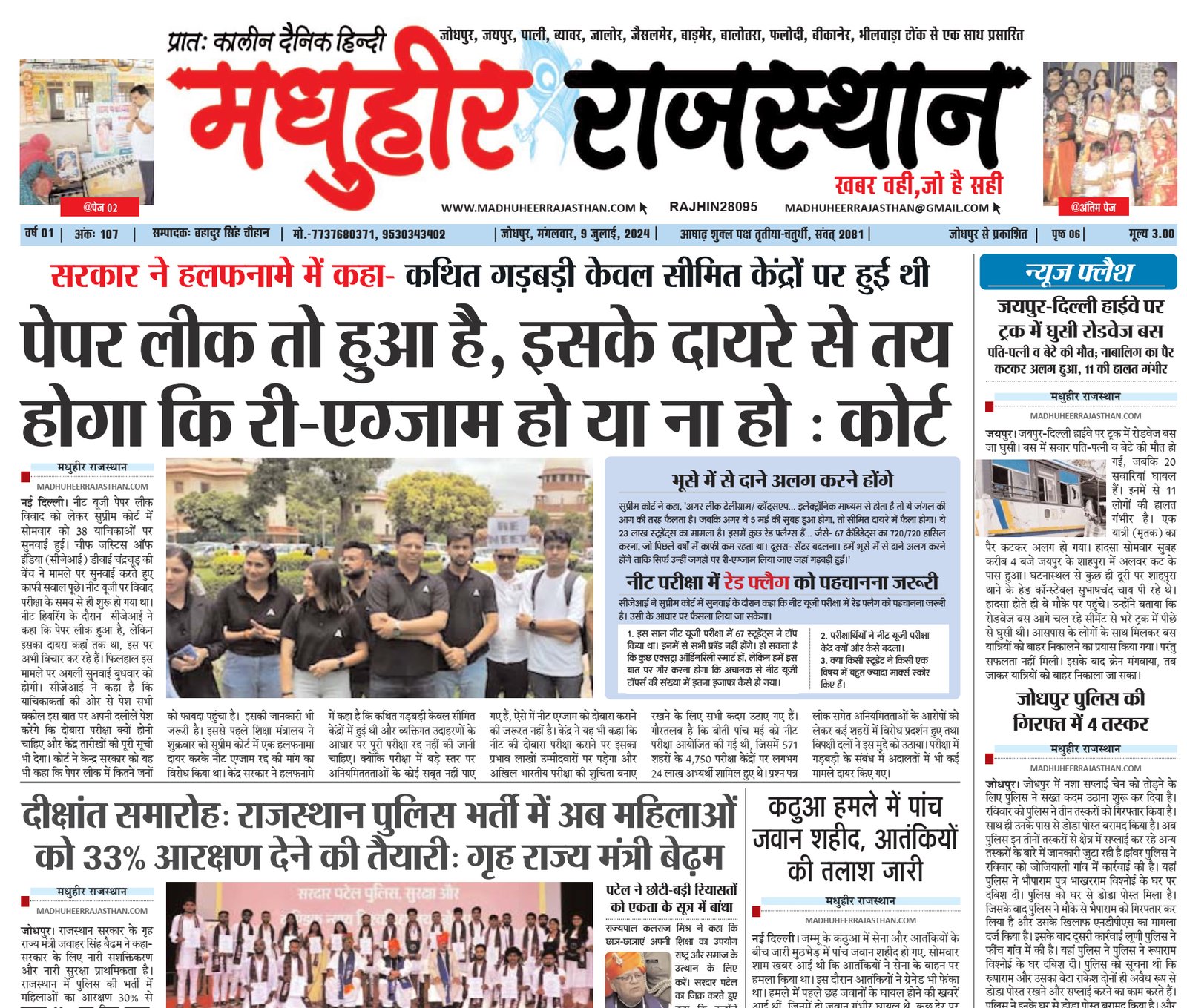 क्या आप \"madhuheerrajasthan\" की खबरों से संतुष्ट हैं?