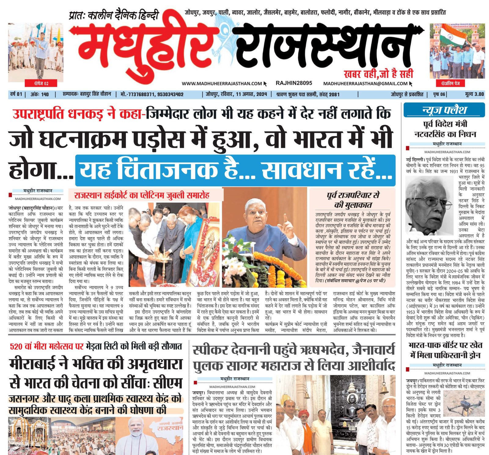 क्या आप \"madhuheerrajasthan\" की खबरों से संतुष्ट हैं?