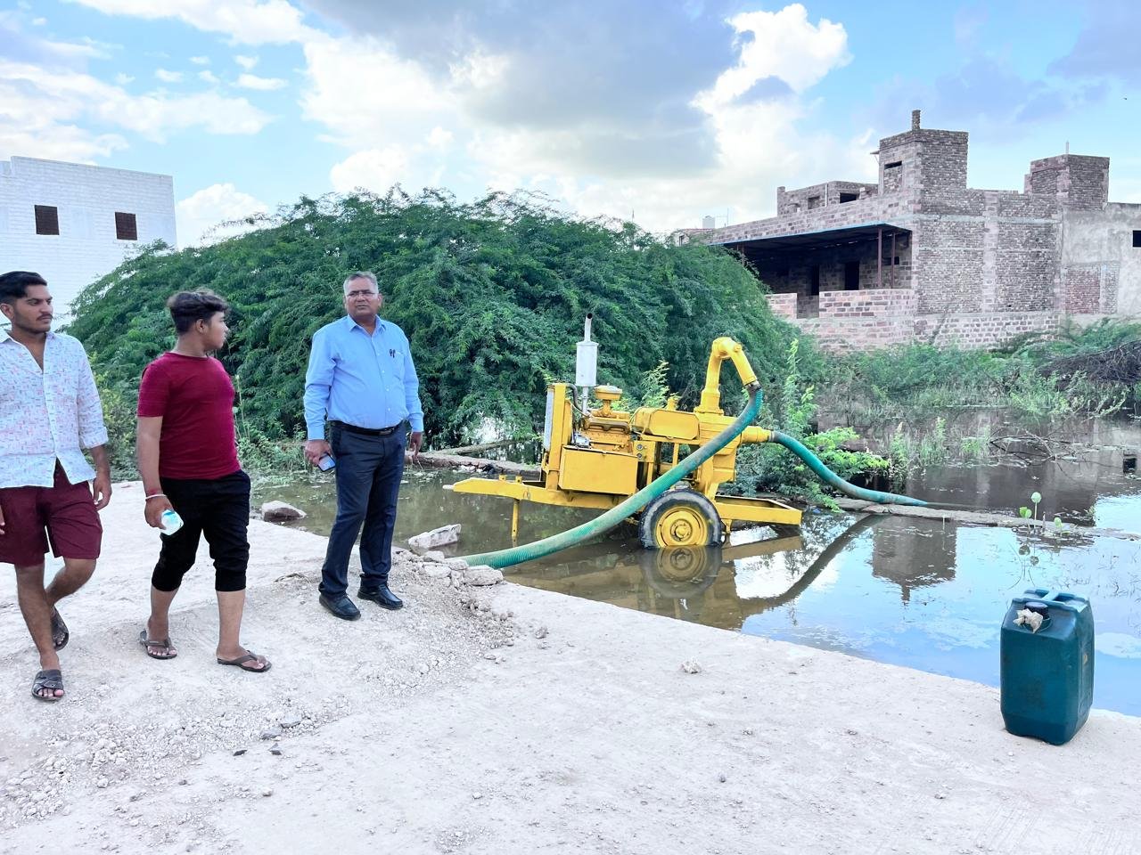 जोधपुर। बनाड़-खोखरिया क्षेत्र में बरसाती पानी के निकासी की समस्या को लेकर जूझ रहे क्षेत्र के निवासियों की समस्या को गंभीरता से लेते हुए स्थानीय सांसद और केंद्रीय संस्कृति एवं पर्यटन मंत्री गजेंद्र सिंह शेखावत ने जिला प्रशासन को समस्या के तत्काल निराकरण का निर्देश दिए। जोजरी तक प्रस्तावित नाले के निर्माण को लेकर भी फीडबैक लिया है। केंद्रीय मंत्री के निर्देश के बाद जिला प्रशासन हरकत में आया और सात पम्प लगाकर कार्य आरंभ किया। जे सी बी से रास्ता ठीक किया गया।