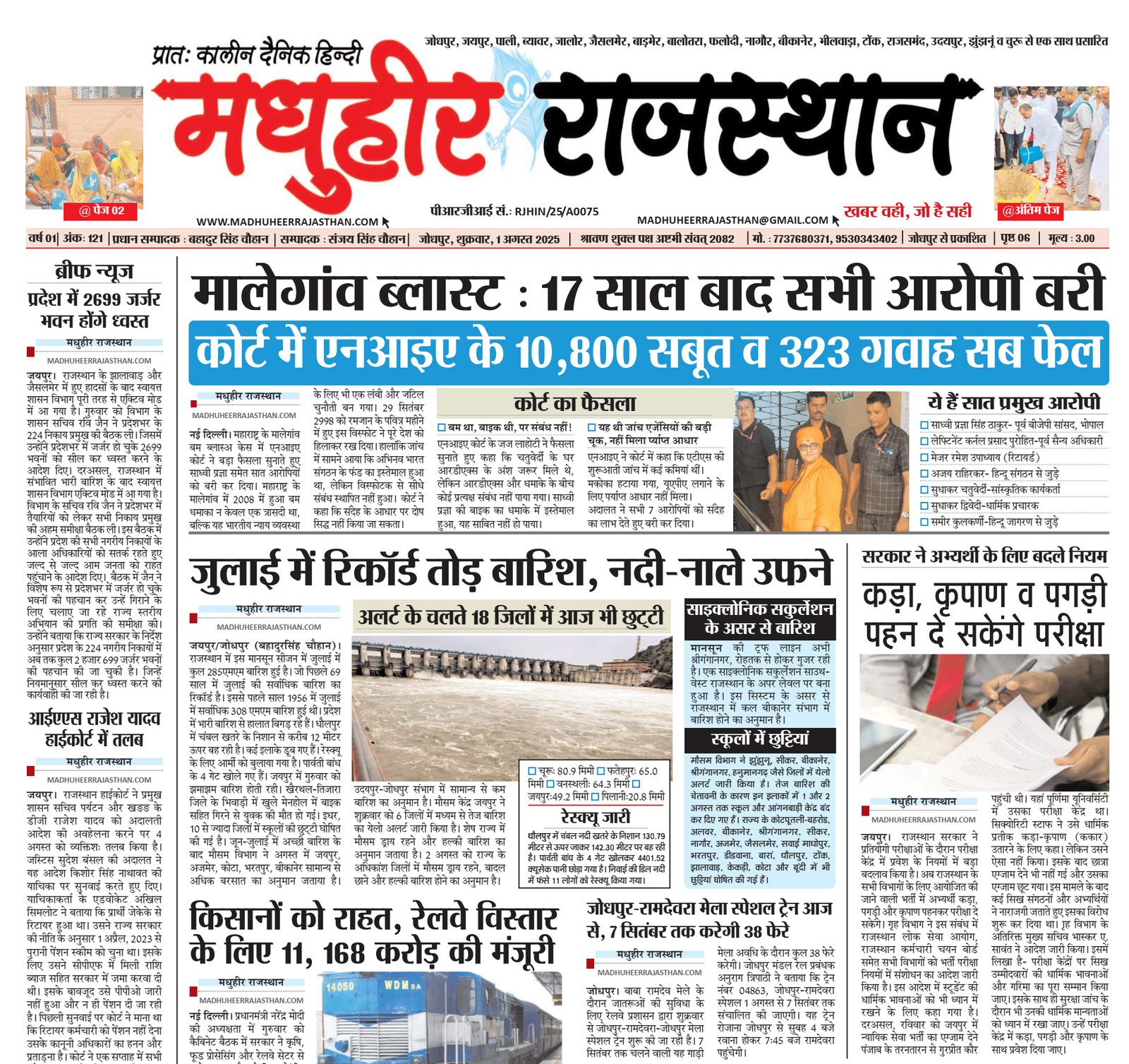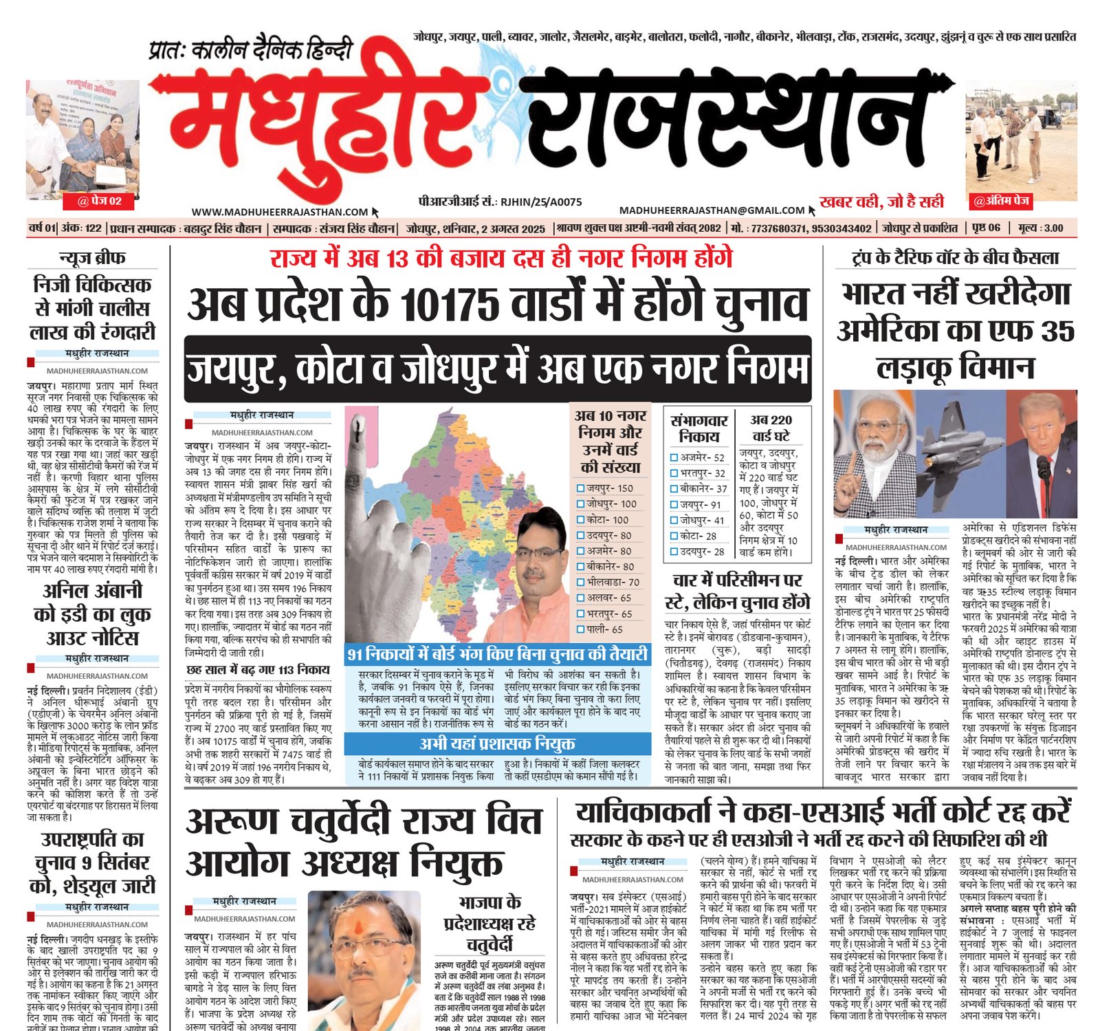 जोधपुर में 17 मार्च को कई क्षेत्रों में जलापूर्ति बंद, 18 व 19 मार्च को बदलेगा सप्लाई शेड्यूल