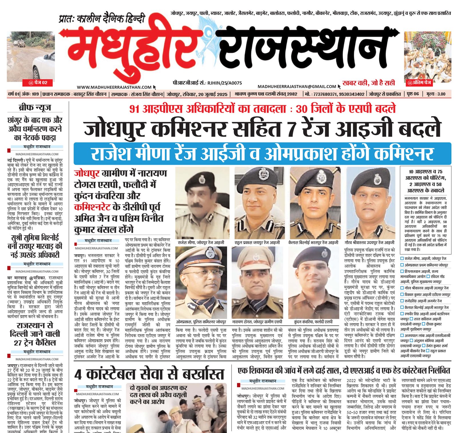 जोधपुर में 17 मार्च को कई क्षेत्रों में जलापूर्ति बंद, 18 व 19 मार्च को बदलेगा सप्लाई शेड्यूल
