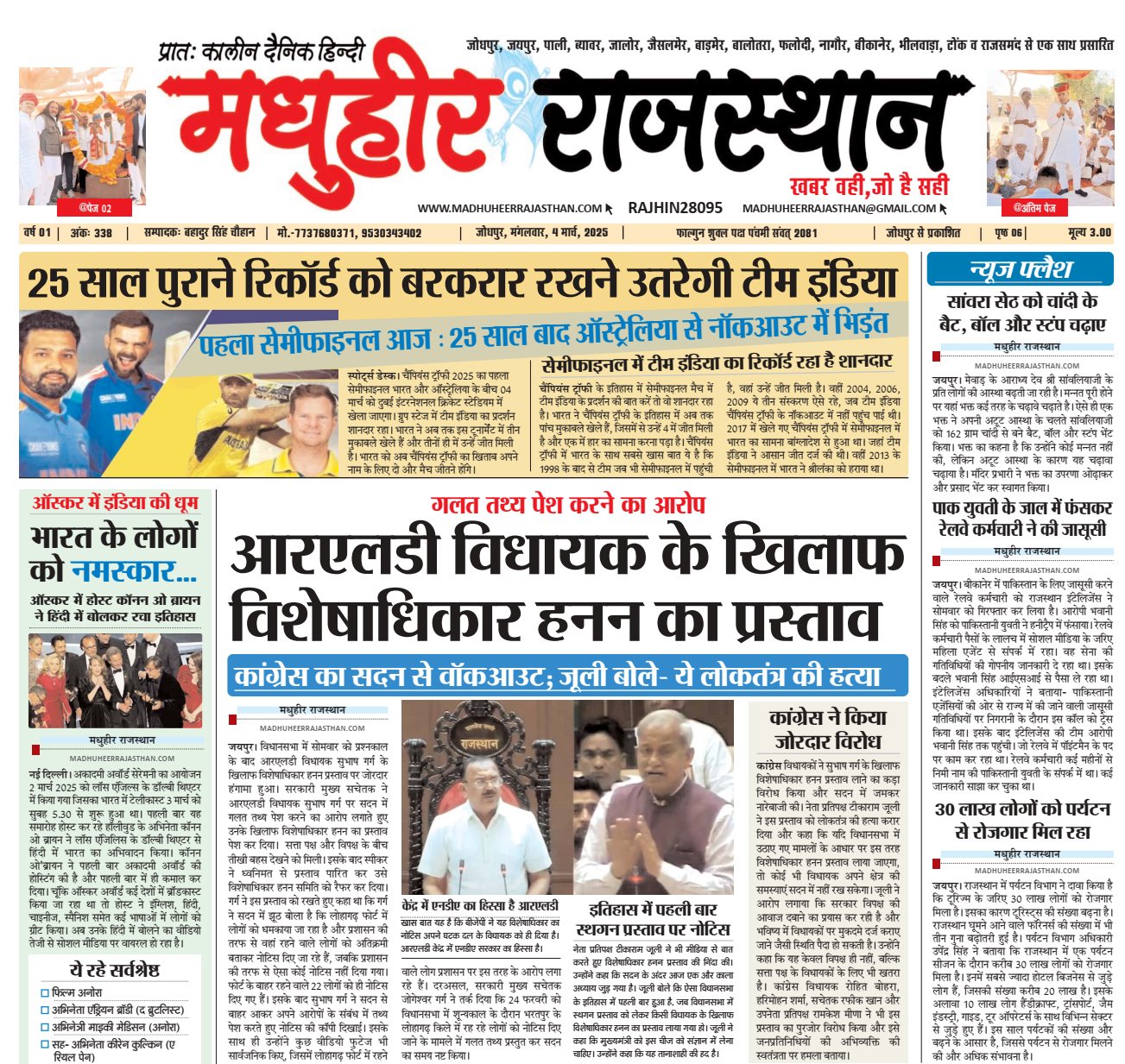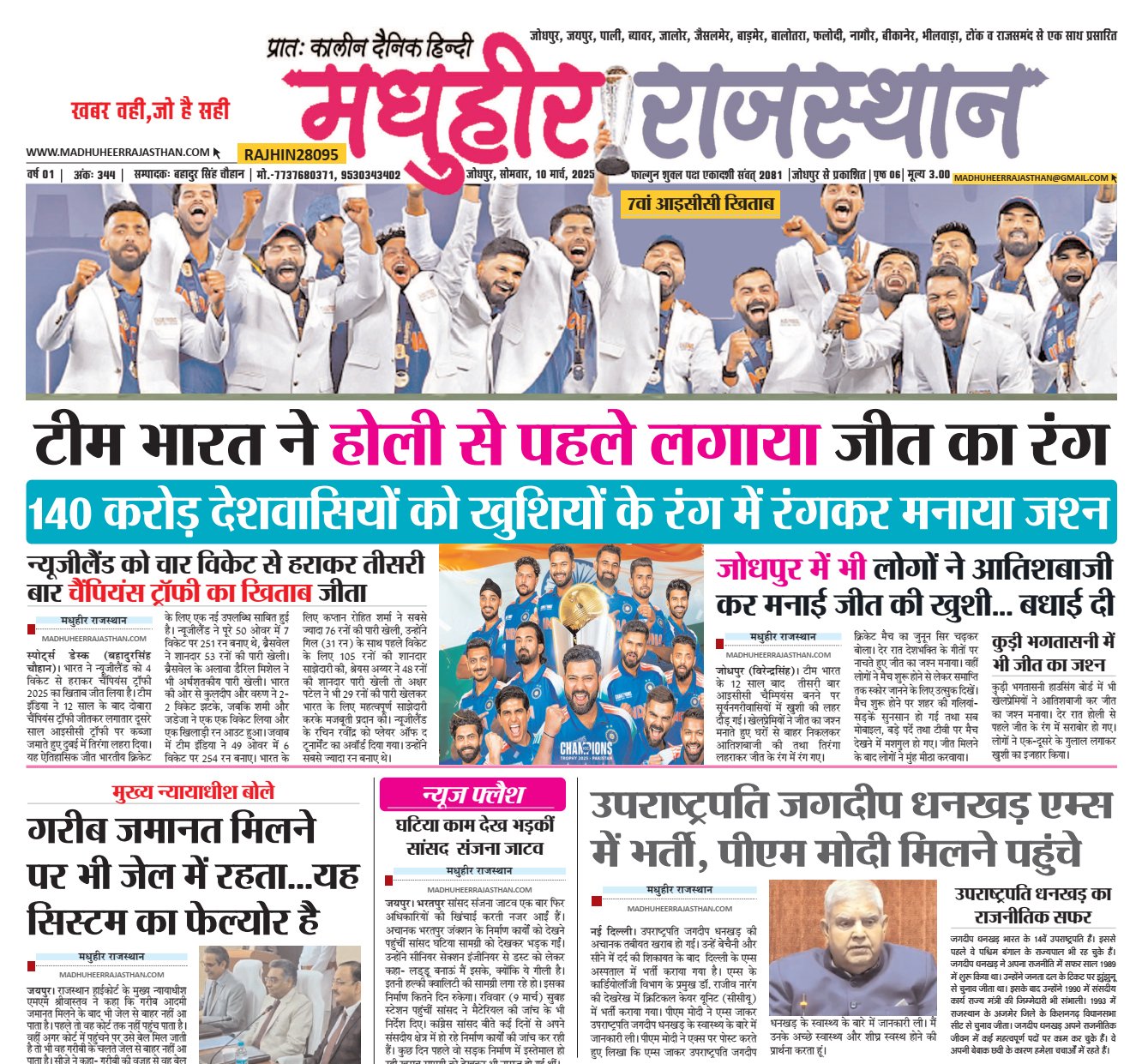 जोधपुर में 17 मार्च को कई क्षेत्रों में जलापूर्ति बंद, 18 व 19 मार्च को बदलेगा सप्लाई शेड्यूल